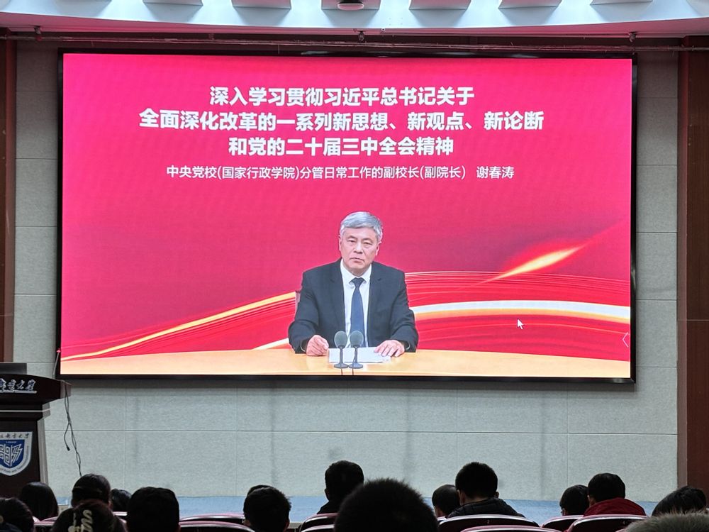 全体教师党员集中学习习近平总书记关于全面深化改革的一系列新思想、新观点、新论断和党的二十届三中全会精神。会议指出,要坚持以习近平新时代中国特色社会主义思想为指导,深刻认识高等教育发展的历史方位和时代使命,努力将学习成果转化为深入推进学校综合改革的思想自觉和行动自觉,以昂扬饱满的工作热情、扎实严谨的工作作风、奋发有为的工作状态,努力交出加快建设中国特色世界一流大学和优势学科的优异答卷。