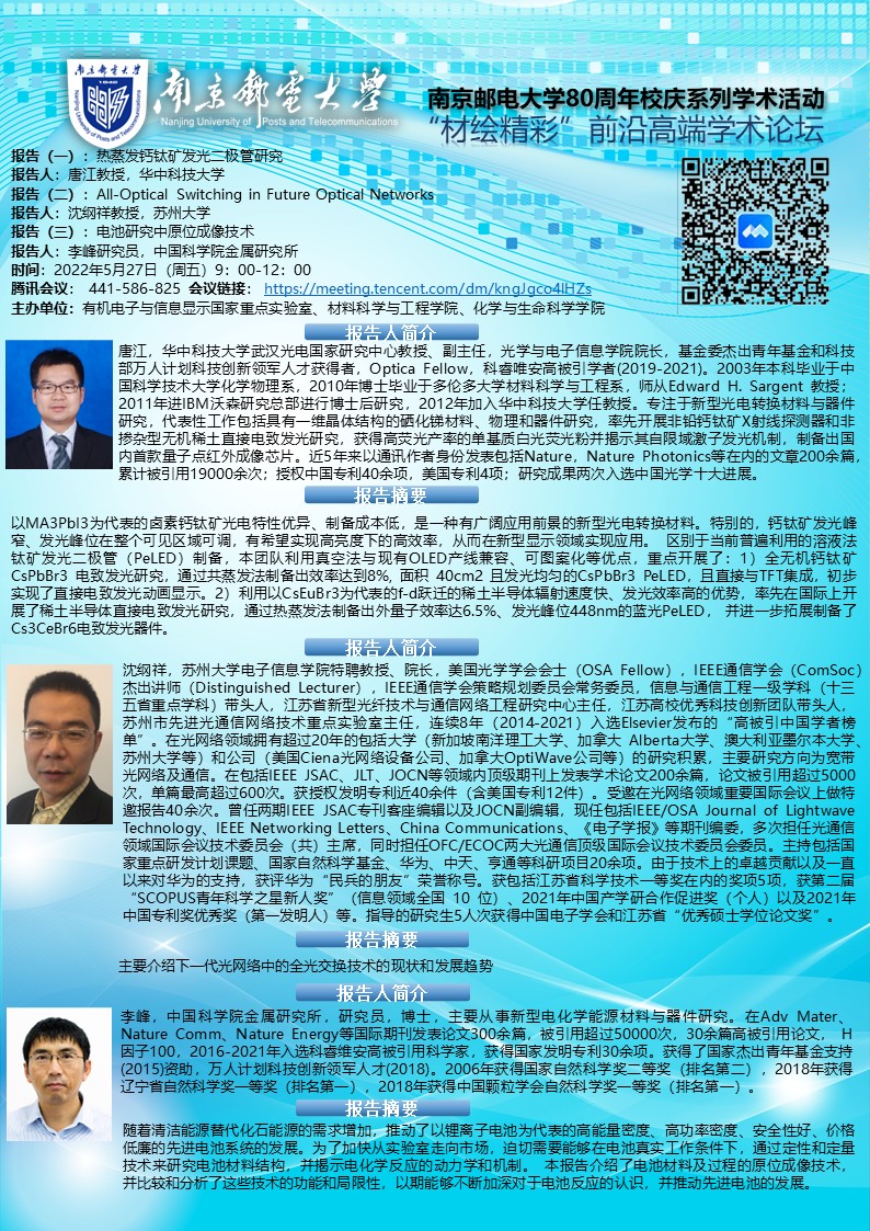 华中科技大学唐江教授、苏州大学沈纲祥教授、中国科学院金属研究所李峰研究员学术报告