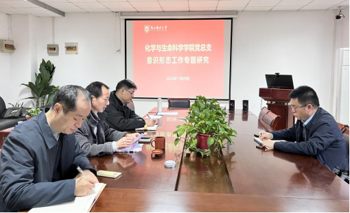 为加强理论武装和思想引导,进一步强化意识形态工作责任制的落实,2022年11月29日,化学与生命科学学院在教5-504(2)会议室召开2022年意识形态工作专题研讨会。学院党政班子成员、党总支委员、各支部书记参加会议。会议由学院党总支副书记张建平主持。