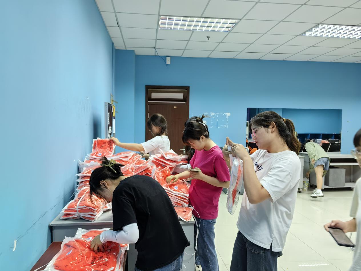 7月15日下午,我院学院分团委书记与志愿者同学们于仙林校区大学生活动中心119室集合,共同分发参与2023年青少年高校科学营校分营109名志愿者的志愿者服饰,其中,每人一顶帽子、两件衣服。过程中,志愿者们将各学院志愿者的服饰以学院为单位,按照尺码大小分块、整齐的摆放。