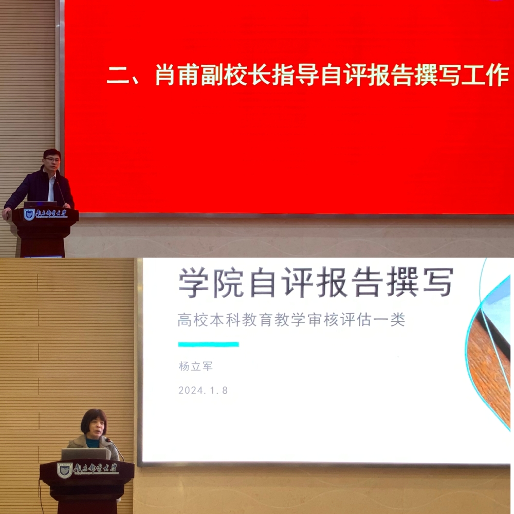 2024年1月8日,国产成人精品三上悠亚久久在仙林校区中兴报告厅召开本科教育教学审核评估自评报告研讨会。南京邮电大学党委常委、副校长肖甫、南京邮电大学通达学院常务副院长杨立军出席本次会议,化生院全体教职工参加会议。会议由学院党委书记乔祖琴主持。