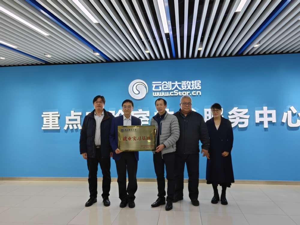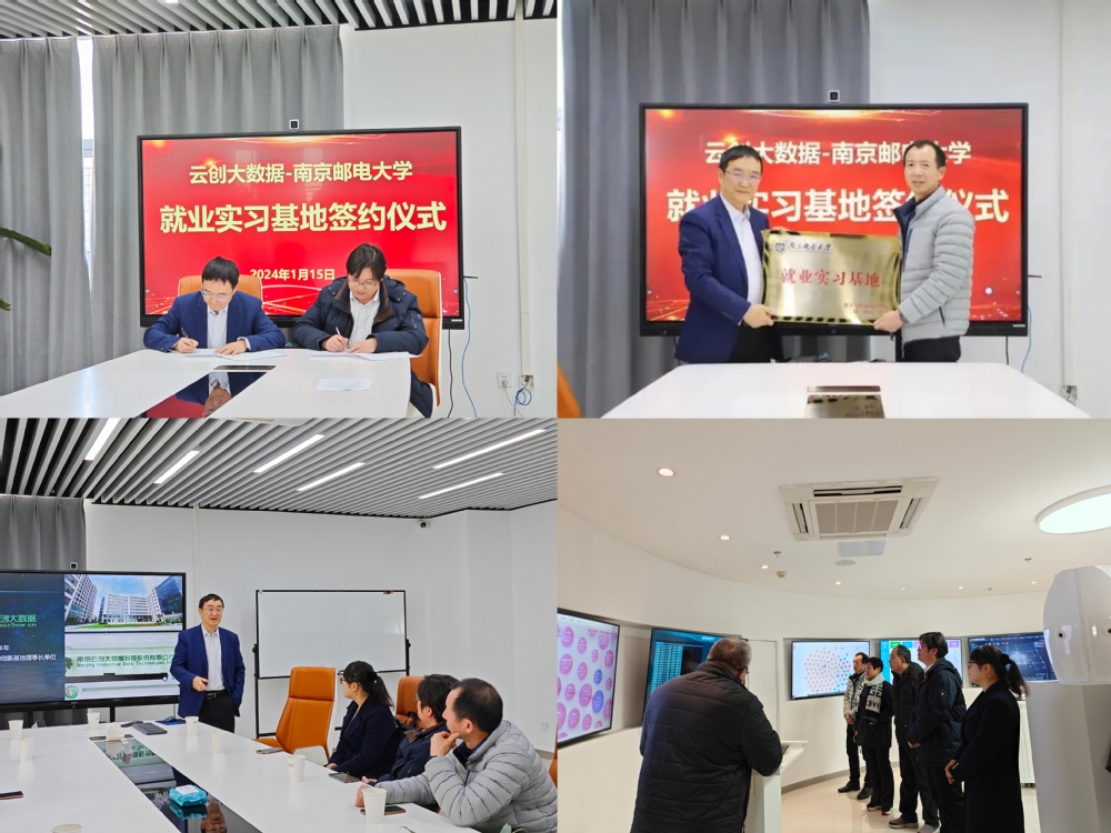 2024年1月15日,南京邮电大学国产成人精品三上悠亚久久与南京云创大数据科技股份有限公司(简称云创大数据)举行就业实习基地签约揭牌仪式。云创大数据总裁刘鹏教授、外联负责人沈大为先生与我院张建平副书记、苏邵副院长等出席仪式。