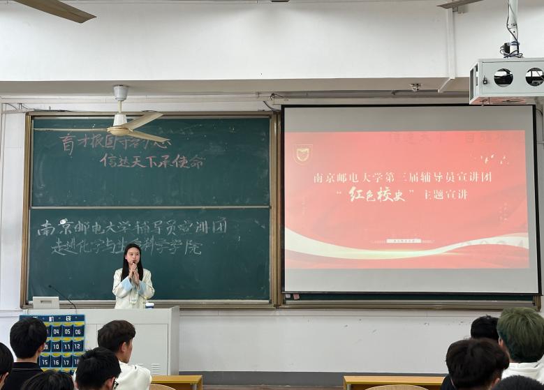 校史是立德树人生动的“教科书”。侍老师从校史的意义、南邮的发源、校名的变迁、定址在南京、传承红色基因等五个部分讲述南邮从无到有、蓬勃发展的人和事,讲述南邮红色的根与魂。榜样的力量是无穷的,事迹可学可做,精神可追可及。侍老师生动地叙述了李旦复、赵志刚、徐六保等胸怀祖国、对党忠诚、自力更生拼搏奉献的人物事迹,为化生学子提供了强大的精神动力。她强调,要继承和发扬一代代南邮人形成的“信达天下 自强不息”的南邮精神,南邮校史不仅是一部光荣的革命史、奋斗史、报国史,更是每一位南邮人的精神财富。最后,她号召同学们珍惜在南邮的学习时光,树立远大理想,胸怀报国之志,勇担历史使命,敢于主动创新,让青春在为祖国、为民族、为人民、为人类的不懈奋斗中绽放绚丽之花。