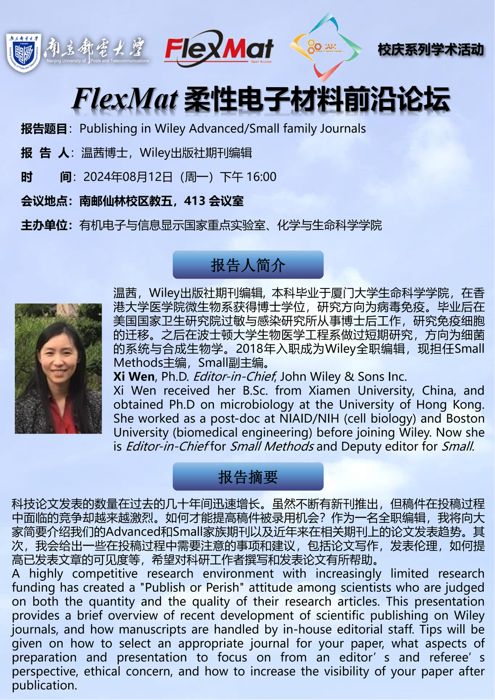 Wiley出版社温茜博士学术报告
