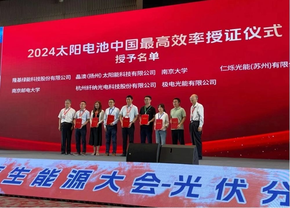 光伏专业委员会委员为2024中国最高效率入选单位颁发证书