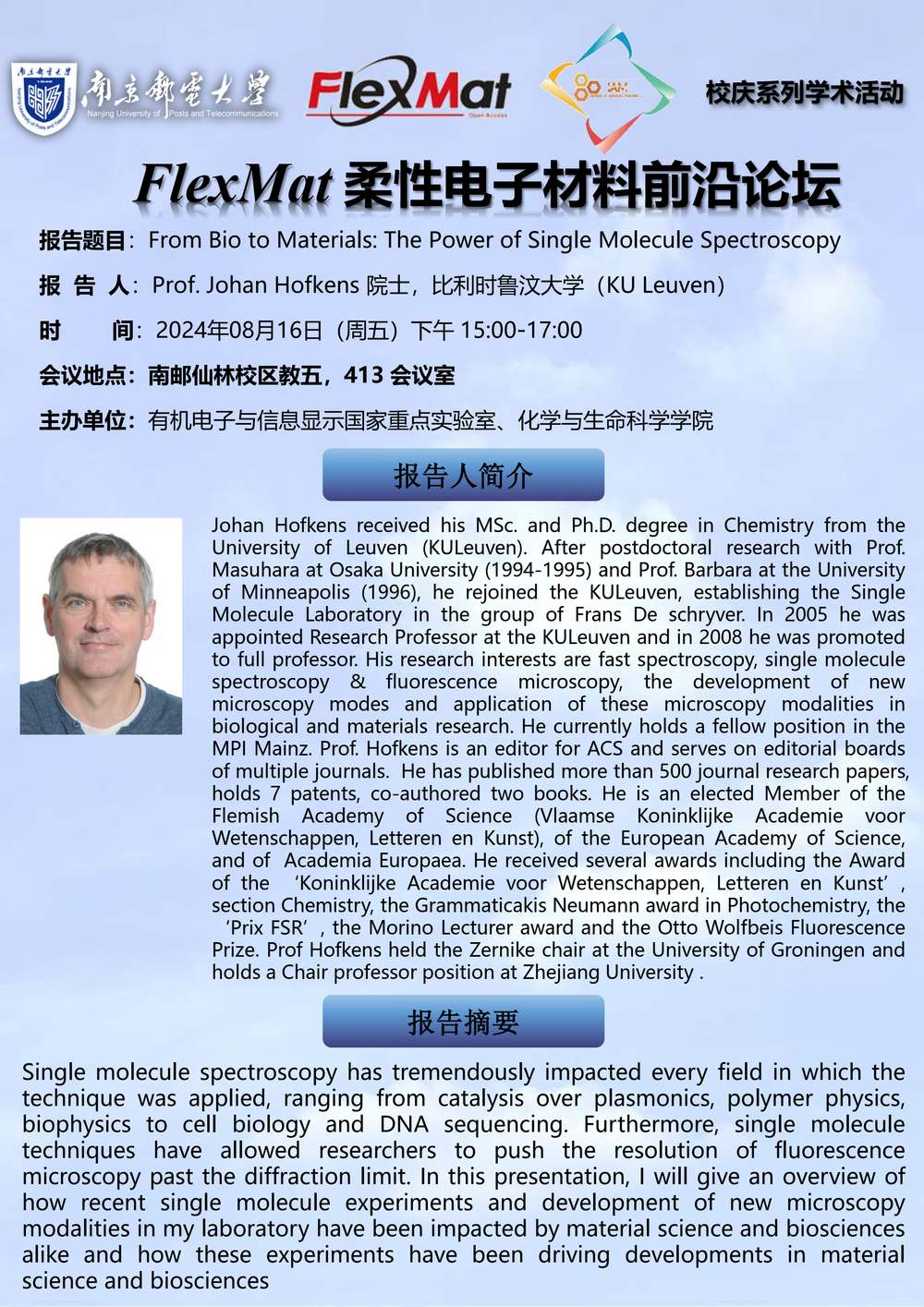 比利时鲁汶大学(KU Leuven)Prof Johan Hofkens学术报告