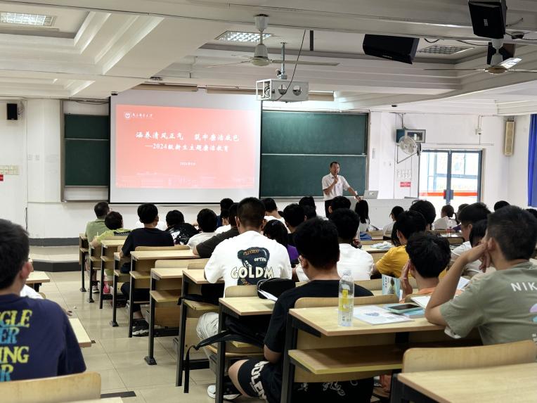 张建平副书记着重强调,廉洁修养是大学生至关重要的品格。他期望2024级新生能够筑牢信仰之基,秉持清清白白做人的原则,树立正确的人生观、世界观和价值观。他从“为何要开展大学生廉洁教育”“近年来党和国家的廉政建设状况”以及“大学生如何实现廉洁自律”这三个方面,深入阐释了开展大学生廉洁教育的重要意义与主要内容,教导新生要树立廉洁意识,规范自身行为,为形成廉洁的社会风气做出贡献。最后,结合大学生的特点,他激励新生坚守清廉底线,踔厉奋发,奋勇争先,努力成为中国特色社会主义事业的合格建设者和可靠接班人。