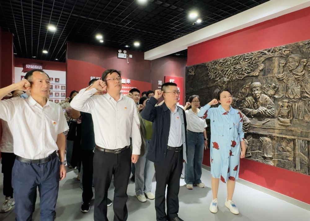 当日上午,教师们首先抵达阳江镇西莲村,在村干部带领下,参观农产品展厅,深入了解乡村振兴战略下特色农业产业发展成果。走进中共月亮湖党支部史料陈列馆,通过珍贵的历史照片、文献资料和实物展陈,重温1933年高淳地区第一个党支部——月亮湖党支部的诞生和组织领导群众开展革命斗争的峥嵘历程。在陈列馆内,党委书记乔祖琴带领全体教师党员面向党旗庄严宣誓,重温入党誓词,引领教师党员们在铿锵誓言中进一步坚定理想初心,强化使命担当。