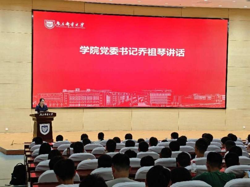 大会在庄严的国歌声中拉开序幕。学院党委书记乔祖琴代表学院向全体2025级新生致欢迎词,她首先回顾了学院自创立以来的发展历程,学院师资力量雄厚,为学校争得多个“第一”,依托全国重点实验室,积淀了浓厚的学术氛围与科研底蕴。随后,她简要介绍了学院所涵盖的主要学科,强调多学科交叉融合在当代科学研究与人才培养中的核心作用。在大学这一新起点上,既要脚踏实地学好专业知识,也要怀抱科学理想,保持好奇与热情,勇于发问、勤于实践,努力成为具备扎实基础、创新能力和责任担当的复合型人才,为未来科学事业与社会发展贡献自己的力量。